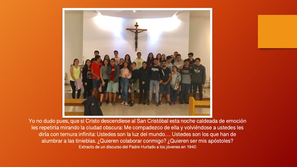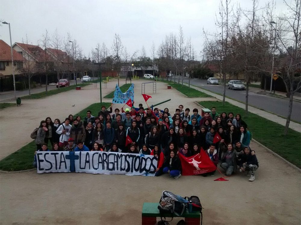 “Es tiempo de que pongamos mayor fuerza de nuestra parte. Reconozcamos el profundo anhelo de Jesucristo de invitar a todos a su mesa, y seamos protagonistas de la nueva evangelización siendo inclusivos, reconociendo al otro como un auténtico otro tan digno como yo, creado tan a imagen y semejanza de Dios como yo mismo, tan capaz de Dios y tan amado por Él como cada uno de nosotros, sus creaturas” (Vicario de la Esperanza, padre Francisco Llanca ) A pesar de la lluvia y el frío, más de 25 mil jóvenes participaron en la Caminata de la Solidaridad 2014, recorriendo con entusiasmo y alegría 8 kilómetros, desde el Parque de los Reyes hasta la tumba del Padre Hurtado. Entre la multitud de jóvenes se encontraban miembros de nuestra pastoral juvenil Jesús Maestro que con mucho entusiasmo se hicieron parte de este homenaje al Padre Hurtado.